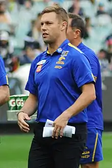 Shortly after his retirement from playing, Mitchell served as an assistant coach with the West Coast Eagles in 2018 under senior coach Adam Simpson.[36] At the conclusion of the 2018 AFL season, which saw West Coast win the AFL premiership in the 2018 AFL Grand Final, Mitchell departed the West Coast Eagles.[37]