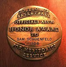 Sam Schoenfeld became the founder and first president (1948–50) of the Collegiate Basketball Officials Association.[1][10]