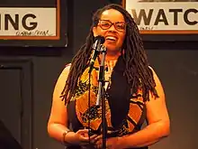 Thornhill's interest in poetry began in 6th grade when she wrote a poem about Christmas in Trinidad. This established a connection with her Trinidadian roots. She attended Wellington High School in West Palm Beach, Florida, where she was assisted by her 10th grade English teacher to develop her writing skills. Thornhill later began to contribute to the school's literary magazine, Poetry Justice. By her senior year, she became the editor-in-chief of the magazine. She attended Florida State University in Tallahassee (2002), where she majored in English with a concentration in Creative Writing, and a minor in Black Studies. This was during a period when the English Department had its highest concentration of black professors, which contributed to her growing knowledge and also led to her meeting some other black poets such as Gwendolyn Brooks and Rita Dove. While in college, she became interested in the spoken word. While performing at FSU, she caught the attention of Keith Rogers, the leader of the local Black Talk poetry troupe. Rogers invited her to perform at the Black on Black poetry reading event, where he was impressed by her writing. She was invited to become a member of Black Talk, launching her career in the spoken word. After graduating with an MFA in poetry from the University of Virginia (2004), she moved to New York City, where she has taught poetry to actors at the Juilliard School.[3]