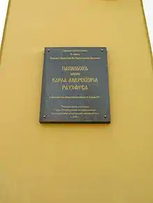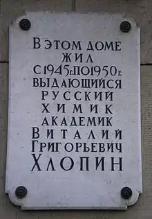 Commemorative plaque for radiochemist Professor Vitaliy Khlopin, founder of Radium Institute