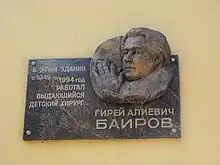Girey Bairov, famous pediatric surgeon, memorial plaque
