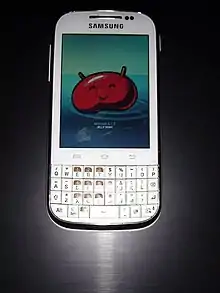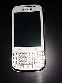Samsung Galaxy Chat GT-B5330 is an Android-based smartphone by Samsung,[1] announced in July 2012 and released in August 2012. Its main features are 3G connection with speeds up to 7.2Mbit/s and Wi-Fi.[2]