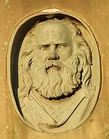 Relief of Samuel Bamford on the obelisk in Middleton Cemetery