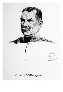 After the war, Sturgis commanded the demobilization centers at Camp Gordon, Camp Pike, and Camp Sherman between 1919 and 1921.[2] In June 1920 he returned to his permanent rank of brigadier general.[2] In October 1921, Sturgis was promoted to permanent major general.[2] He commanded the Panama Canal Department until October 1924.[2] Sturgis commanded the Third Corps Area headquartered at Fort Holabird from November 1924 until retiring in August 1925.[2]
