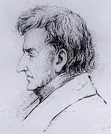 Among Drummond's sitters were Walter Scott, Francis Place, Elizabeth Fry and Marc Isambard Brunel.[2] He also painted such persons as Admiral Edward Pellew, Captain William Rogers and Rear-Admiral William Edward Parry. After 1800, Drummond started large oil paintings on maritime history of the United Kingdom (The Battle of the Nile, 1st August 1798, Captain William Rogers Capturing the Jeune Richard, 1 October 1807, Admiral Duncan at the Battle of Camperdown, 11 October 1797 (1827) and a series of paintings on the death of Horatio Nelson.[3]