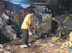 On 24 January 2000, the part of the radiation therapy unit containing the radiation source was acquired by two scrap collectors, who claimed to have bought it from some strangers as scrap metal for resale. They took it home, planning to dismantle it later. On 1 February, the two, together with another two associates, attempted to dismantle the metal part (a 97-kilogram, 42-by-20-centimetre lead cylinder held in a stainless steel casing), which was the unit's source drawer. Using a hammer and chisel, they only managed to crack the welded seam. Two of the men then took the metal piece, along with other scrap metal, to a scrapyard on Soi Wat Mahawong in Phra Pradaeng District, Samut Prakan Province. There they asked a worker at the scrapyard to cut open the cylinder using an oxyacetylene torch. As the cylinder was cut open, two smaller cylindrical metal pieces, which had held the source capsule, fell out. The worker retrieved the two pieces and kept them in the scrapyard, but was unaware of the source capsule itself. The lead cylinder was returned to the scrap collectors for them to complete the disassembly.[9]