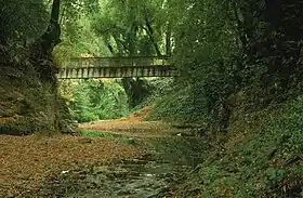 San Anselmo Creek, along with its Sleepy Hollow and Cascade creeks tributaries, is the principal steelhead trout (Oncorhynchus mykiss) contributor of the Corte Madera Creek watershed.[4] Although short on water by late summer, Cascade Creek is considered to have the best trout habitat in the watershed.[5] Rich electrofished five species of fish in San Anselmo Creek in 1999 of which rainbow/steelhead trout were the most abundant, followed by threespine stickleback, California roach, sculpin species, and Sacramento sucker.[6]