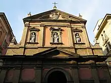 San Benedetto is a Roman Catholic church in central Bologna. Founded in the 12th century, the church now has facade (1606) designed by Giovanni Battista Ballerini. The Facade was rotated 180 degrees in 1892; it once faced Via Galliera, and now faces Via dell'Indipendenza. The interior contains works by Giacomo Cavedoni, Alessandro Tiarini, Cesare Aretusi, Lucio Massari, Ercole Procaccini il Vecchio, Ubaldo Gandolfi, and a sculpture by Angelo Gabriello Piò.[1]
