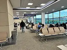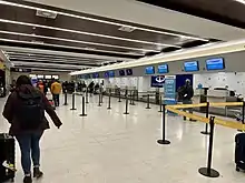 San Carlos de Bariloche Airport (Spanish: Aeropuerto de San Carlos de Bariloche) (IATA: BRC, ICAO: SAZS), also known as Teniente Luis Candelaria Airport,[5] is an international airport serving the city of San Carlos de Bariloche, Río Negro, Argentina. The airport covers an area of 1,810 hectares (4,500 acres; 7.0 sq mi) and has a 12,000-square-metre (130,000 sq ft) terminal; it is located 13 kilometres (8.1 mi) out of the city.[2]