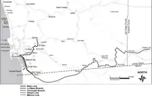 - Coronado Branch (currently unused): Splits from the Main Line in National City and runs 7.2 miles (11.59 km) south to Imperial Beach.