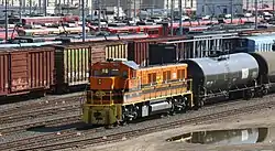![]() SDIY 702, a locomotive for the San Diego and Imperial Valley Railroad at the railroad's yard in Downtown San Diego. | |||