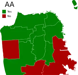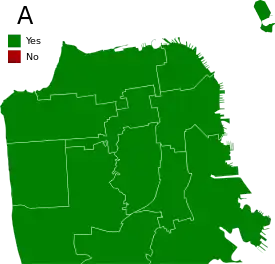 Proposition A would authorize the City to issue $46.15 million in bonds for the seismic retrofitting of multi-story wood structures. This measure required a two-thirds majority to pass.