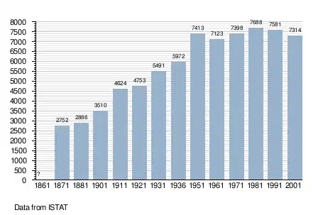 - ↑ "Popolazione Residente al 1° Gennaio 2018". Italian National Institute of Statistics. Retrieved 16 March 2019.