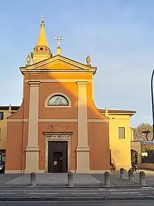 The church is dedicated to Saint Jerome. The church was first erected in 1338 in the neighborhood of Arcoveggio, so called due to an ancient arch remaining from a Roman bridge that spanned the Savena river. In 1567, cardinal Gabriele Paleotti converts this into a parish church refurbishing the church in neoclassic style. The bell tower dates to 1880.[1][2] An inventory from 1844 noted a painting in the portal of St Jerome. The interior contained altarpieces by il Mastellatta and Ubaldo Gandolfi.[3]