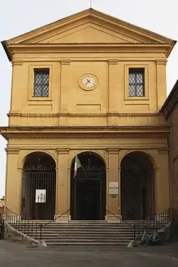 A survey from the 1840s claim that the church contained paintings by a Pietro Locatelli, and the main altarpiece was a copy of Domenichino's Communion of St Jerome.[4] Nearby on via del Pignattello are the remnant of the Monastery of the Convertite of Santa Maria della Grazie.