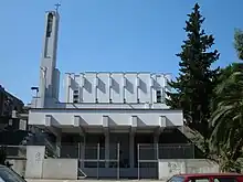 It was built in the twentieth century by the architect Aldo Aloysi. The church is located in an elevated position with respect to the square outside and is accessed by a ladder on the left side. Totally built of reinforced concrete, the church is flanked by a high bell tower, which features a statue of Christ with outstretched arms.