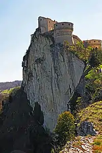 San Leo (Romagnol: San Lé) is a comune (municipality) in the Province of Rimini in the Italian region Emilia-Romagna, located about 135 kilometres (84 mi) southeast of Bologna and about 35 kilometres (22 mi) southwest of Rimini. It is one of I Borghi più belli d'Italia ("The most beautiful villages of Italy").[3]