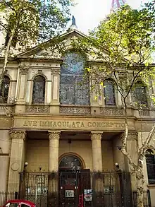 The origins of this temple date back to 1856, when the first Betharram Fathers arrived.[2] An important part of the social and religious life of Basque immigrants was linked with this church for decades; services were held in Euskera back then.[3] The church, designed by French architect Víctor Rabú in eclectic historicist style,[4] was consecrated in 1870.[2]