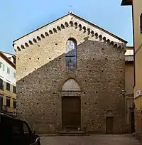 Exterior of San Remigio di Firenze showing the hanging arches along the roof line.