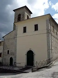The church was built in the 14th century, nearby a castle on these hills protecting the road to Cascia. To this primitive church was added a portico in the following centuries, whose arches are now mainly walled. The heraldic symbol at the entrance recalls the church was once owned by the Benedictines of the Collegiate church and monastery of San Panfilo in Padule. The interior has altarpieces depicting the Annunciation (copy of a work by Carlo Maratta) and a Madonna of the Rosary from the studio of Sebastiano Conca. The organ is from the 18th-century, and restored in 1992. An altarpiece in the church appears to depict the martyrdom of Saint Pope Sixtus II.[1]