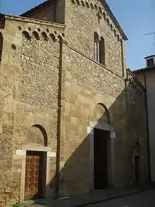 It was consecrated in 1133 but previously it had been already used as the seat of the most important notary act of the Pisan commune. It was built in a Pisane-Romanesque style in stone. The façade is divided in three parts divided by pilaster strips, with a mullioned window and arches in the upper part which continues on the whole exterior. Notable is the typical local decoration with Islamic ceramic basins from the 10th-11th centuries (copies; the original are in the Museum of St. Matthew in the city).