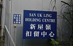 Entrance sign of San Uk Ling Holding Centre in San Uk Ling