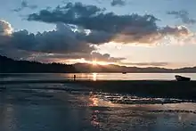 San Vicente's 14.7 kilometres (9.1 mi) of beachfront, popularly called the Long Beach, is being converted into an emerging tourist destination that will be the beneficiary of government spending on infrastructure.[5] The Long Beach have two rocky cliffs interrupting the continuous expanse of approximately 14.7 kilometers of sugary white sand beach dividing it into three coves.[6] It is the longest white sand beach in the Philippines and is the First Flagship Tourism Enterprise Zone of the Tourism Infrastructure and Enterprise Zone Authority (TIEZA).[7] The Long Beach spans to the coastline of four barangays namely Poblacion, New Agutaya, San Isidro and Alimanguan.[8]