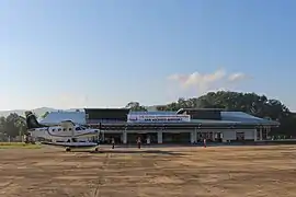 The airport features a passenger terminal, a fire station building and an elevated 2,500-US-gallon (9,500 L) water tank facility.[6] Its concrete runway measures 1,803 meters (5,915 ft) long and 45 meters (148 ft) wide.[2] The terminal can accommodate 100 people.[5]