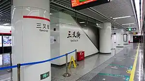 Sanchajie Station (Chinese: 三叉街站; pinyin: Sānchājiē zhàn; Fuzhounese: [saŋ˨˩ ʒa˥˥ ɛ˥˥]) is a metro station of Line 1 of the Fuzhou Metro. It is located at the intersection of Shangsan Road, South Liuyi Road and Zexu Avenue in Cangshan District, Fuzhou, Fujian, China.[1] It started operation on May 18, 2016.[2] Sanchajie Station was once the terminus of this line until the opening of northern section on 6 January 2017.
