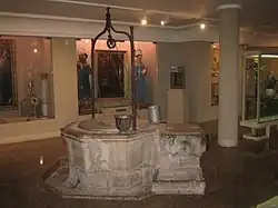 The presbytery is presided over by a silver monstrance supported by two golden carved angels, work of the sculptor José Ortells, from 1952, which were previously used to hold the remains of the saint. With similar architectural style a small chapel adjacent to the portico, in the enclosure of the gate, keeps the image of St. Peter of Alcántara, work of Ignacio Vergara, which could be saved from the fire of 1936. Some pieces of artistic and historical value from between the 16th and 20th centuries, saved from the fire of 1936, remain on display in the museum room of the Pouet del Sant (Well of the Saint), on the first floor of the Royal Chapel.