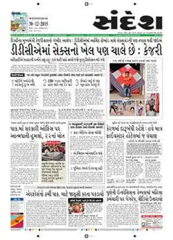 Sandesh is a leading Gujarati daily newspaper that started publications in Ahmedabad, Gujarat in 1923. It has the second largest readership in Gujarat as of 2019 according to the Indian Readership Survey.[1] The paper focuses coverage on local and regional stories consequential to the various city editions in print, published from Vadodara, Surat, Rajkot, Bhavnagar, and Bhuj. The newspaper was purchased from the founder in 1958 by Chimanbhai S. Patel and has since been a core business division of 'The Sandesh Limited'.[2][3]