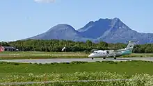 Sandnessjøen airport is served by Widerøe with Dash 8 aircraft connecting the community to Bodø, Trondheim and Oslo. The routes to Bodø and Trondheim are operated on public service obligation with the Norwegian Ministry of Transportation and Communication and have stopovers in Brønnøysund, Mo i Rana and Mosjøen.[3][4]