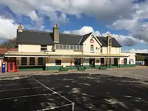 The adjacent land, which used to be occupied by coal-yards, is now a housing estate and the former Terminus Hotel pub opposite has long been a private house. The line from Ryde to Shanklin was constructed between 1862 and 1864, and opened to passenger traffic on 23 August 1864.[1] The original station building was extended between 1870 and 1871 through the addition of a two-storey extension to act as station offices.[2]