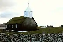 Sandur is an old site of the thing where every year the local Várting was held. Excavations here have unearthed a stave church from the 11th century, where today there is a typical Faroese wooden church with a grass roof. In 1988, the modern church suffered a devastating fire in which all of the church's silver melted. The fire turned out to be arson. In the following year, the church was restored, just in time for its 150th anniversary.