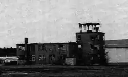 The Sanford Airport began as an airfield constructed by the Sanford Mills in the 1930s, with a single airstrip and hangar. With the entry of the United States into World War II in 1941, the airfield was expanded by the United States Navy in 1942 and formally commissioned as Naval Auxiliary Air Facility Sanford in 1943. It served as one of several secondary airfields to the primary Naval Air Station Brunswick. Its runway network was enlarged and paved, and barracks and a control tower were built on what is now the southwestern side of the airfield. A torpedo squadron and a fighter squadron were stationed here in 1944, and the field was used for training exercises. After the war ended, the facilities were largely mothballed, but remained staffed until the 1960s. Of the structures built by the Navy, only a hangar and the control tower/administration building survived.[7] The latter, once listed on the National Register of Historic Places,[6] was demolished in 2006–2007 because it was in poor condition and the tower was deemed a hazard to aviation.[8]