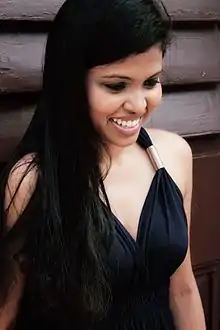 Sangita's family has deeply rooted musical inclinations, the most notable members being her late grandfather who was the second Indian president of the prestigious (MMA) and her father Dr. Ravi Santosham who has been serving as its president since 1990[3] and is also a member of the famous GATT Quintet[4][5][6][7] and the Male Voice Ensemble.[8][9] Sangita trained with Neecia Majolly, in musical theatre, western classical singing and music theory and was awarded the Majolly Rolling Trophy in 2009 for the best singer in Music Theatre. She also spent a year training in western classical singing at the Wanda L. Bass School of Music in Oklahoma City. She is an Associate of the London College of Music London College of Music.
