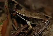 1. IUCN SSC Amphibian Specialist Group (2018). "Sanguirana sanguinea". IUCN Red List of Threatened Species. 2018: e.T58709A114915766. doi:10.2305/IUCN.UK.2018-2.RLTS.T58709A114915766.en. Retrieved 17 November 2021.
