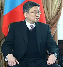 Bayar Sanj (Mongolian: Санжийн Баяр, romanized: Sanjiin Bayar; born 24 December 1956) is a Mongolian politician who was General Secretary of the Mongolian People's Party from 22 November 2007 to 8 April 2010, and Prime Minister of Mongolia from 22 November 2007 to 29 October 2009. He announced on 26 October 2009, that he was going to resign his position as Prime Minister due to health reasons.[3] He was replaced by Sükhbaataryn Batbold on 29 October 2009.