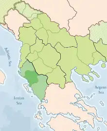 The Sanjak of Delvina (Turkish: Delvine Sancağı, Albanian: Sanxhaku i Delvinës) was one of the sanjaks of the Ottoman Empire which county town was Delvinë but during the 18th century became Gjirokastër, Albania. It was created in the mid-16th century,[1] came under the control of the Pashalik of Yanina during 1785−1822, and was disestablished after the Balkan Wars in 1913. It was divided between Albania Albania and Greece in 1913.