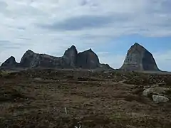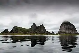 Sanna (sometimes Sanda) is an island and village area in the municipality of Træna in Nordland county, Norway. The 3-square-kilometre (1.2 sq mi) island is the largest island in Træna municipality. The island is located less than 1 kilometre (0.62 mi) west of the main island of Husøya. The island has five characteristic mountaintops, the highest is the 338-metre (1,109 ft) tall Trænstaven. The Traena Music Festival is held on this island each year.[1] The island has 3 residents (in 2018).