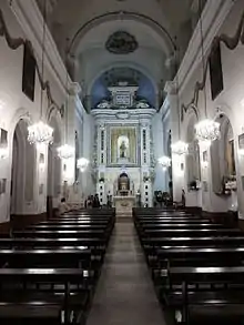 The Church is with a single nave,[1] has a baptistry and seven chapels,[1] embellished by frescoes made by Leonardo Mirabile and Giovanni Dato,[3] while the frescoes on the nave and the vault were realized by Eugenio Ligotti and Salvatore Gagliano[3] from Palermo.