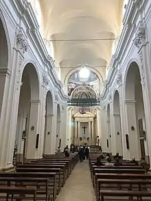 The lords of the town, the aristocratic Gravina-Cruyllas family, endowed the church with patronage. The 1693 Sicily earthquake severely damaged the church. Reconstruction at the same site was quick, with the church rebuilt by 1699. The new central bell-tower was completed by 1717. In 1742, the church was made collegiate. The church escaped much damage during World War II, but the earthquake of 13 December 1990 required substantial restoration.[1]