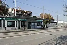 On 8 May 2004, the first section of the Trambesòs system, which travelled from Barcelona's Plaça de les Glòries Catalanes to this stop, was opened as part of route T4.[8] Four years later, on 16 June 2008, new route T6 was launched and started serving this stop.[9] Although the T6 initially ran between this stop and Gorg metro station in Badalona via the Sant Adrià de Besòs neighbourhood of La Mina, since the restructuring of the Trambesòs system applied on 20 February 2012, the T6 terminates at Plaça de les Glòries Catalanes instead of Gorg.[10]