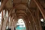 This is all that remains of the cooperative wine press, begun in 1921 to the design of Cesar Martinell, an architect who specialised in agricultural building at that time, inspired both by Gaudi's art nouveau design and the rationalism of the beginning of the 20th century. The wine industry declined after the 1950s and the last pressing was completed in 1988. The surrounding buildings were demolished, including, in 1994, the hall for vats, to allow for the expansion of urban building. In the remaining hall, exhibitions are shown and can be visited on certain days, particularly weekends. [4]