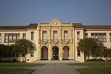 Santa Barbara Senior High School, "Home of the Dons," is situated on a sprawling 40-acre (160,000 m2) campus in Santa Barbara, California in the Santa Barbara Unified School District. Among the oldest high schools in California and one of five high schools in the District, Santa Barbara High School was established in 1875 at the corner of Anapamu and De La Vina, but relocated to its present Upper Eastside site in 1924.[4] Today, Santa Barbara High School has a diverse, near 65% minority enrollment of over 2000 pupils, 92 full-time teachers, and small learning academies, including Visual Arts and Design (VADA), Computer Science (CSA), and Multimedia Arts and Design (MAD).[5] The school also features a performing arts department that employs professional designers, choreographers, musical directors and guest artists.[6]