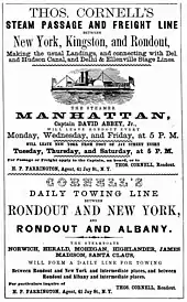 In 1851, the steamer was again running as a night boat between New York and Albany, this time as an "Opposition Boat".[33] while Sundays were reserved for day trips to Kingston.[33] From June, she appears to have switched her outward-bound destination to Poughkeepsie, the trip incorporating a large number of way-landings including Newburgh.[34][35]