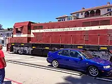The Beach Train uses diesel locomotives to haul vintage passenger cars over an 8-mile (13-kilometer) route between Felton, California, and Santa Cruz, California. The SCBT&P is one of very few railroads in North America with extensive street running rails, with trackage in Santa Cruz.