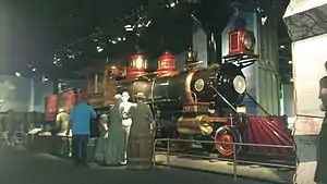 In the 1960s, United Fruit was purchased by New York entrepreneur and DC Transit operator O. Roy Chalk. For reasons unknown, Chalk selected the former Jupiter locomotive for display as part of a children's park he was developing in Washington D.C., and the engine was shipped to that city to be displayed. In D.C., the engine drew the attention of Smithsonian Institution curator John H. White, Jr., who had taken particular notice of the engine's year built. White convinced Chalk to donate the engine to the Smithsonian as part of their upcoming Bicentennial Exhibition of 1976. The engine was cosmetically restored to its as-delivered appearance, and placed on display in the Smithsonian's Arts and Industries Building in 1976 for the exhibit, which was a recreation of the displays of the Centennial Exposition of 1876.[4] The engine was displayed in this building until 1999, when it was relocated to the Smithsonian's National Museum of American History on the opposite side of the National Mall, initially placed beside Southern Railway engine 1401. The engine was relocated again in 2004 (though it remained within the museum building) when the exhibits were reconfigured into the America on the Move exhibition, which features the engine displayed as part of a diorama recreating its arrival in Santa Cruz in 1876.