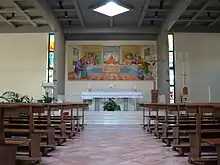 It was built in 1997 as a parish church in the Roman Catholic Diocese of Rome and seats 300.[1] Its address is Piazza Salvatore Galgano 100, Roma, Lazio 00173, at the Viale Bruno Pelizze, in East Rome's XXth prefecture.