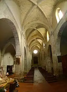 Interior of central nave with ribbed ceiling
